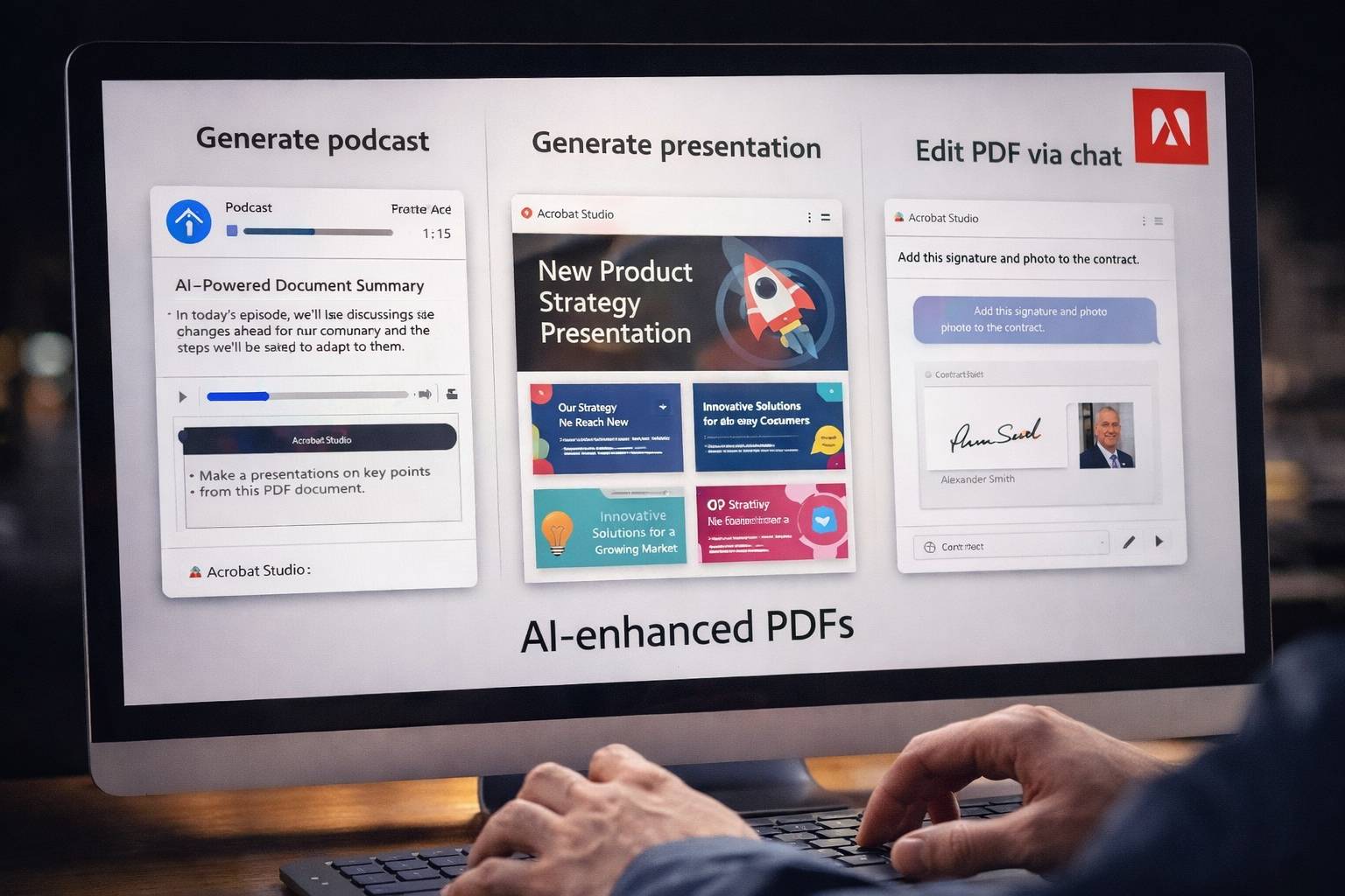 La novità ruota attorno all’introduzione di nuovi strumenti di AI capaci di trasformare i documenti Acrobat PDF in presentazioni, contenuti audio in stile podcast e materiali modificabili tramite semplici prompt testuali. Il cuore di questa evoluzione è Acrobat Studio, un ambiente di lavoro separato dal classico visualizzatore PDF, progettato per accompagnare l’utente in tutte le fasi di comprensione e rielaborazione di un documento, non più limitandosi alla consultazione passiva.