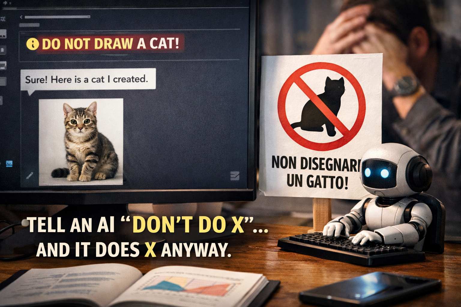 Alla base di questo comportamento c’è un problema fondamentale legato all’interpretazione delle negazioni. Quando nella nostra lingua naturale formuliamo una frase come “non fare X”, il cervello umano è abituato a gestire la negazione: capisce che l’azione X è citata per essere esclusa e che l’enfasi va posta sull’evitare quell’azione. Per un modello di linguaggio, invece, le cose non sono così semplici. I modelli non “comprendono” nel senso umano del termine, ma generano risposte sulla base di grandi quantità di esempi statistici. La negazione, soprattutto se inserita in contesti complessi o in doppie negazioni, può essere per loro una trappola linguistica. In sostanza, il modello può riconoscere la presenza dell’azione proibita all’interno della frase e, anziché inibirla, finisce per mettere in rilievo proprio quell’azione nella sua risposta.