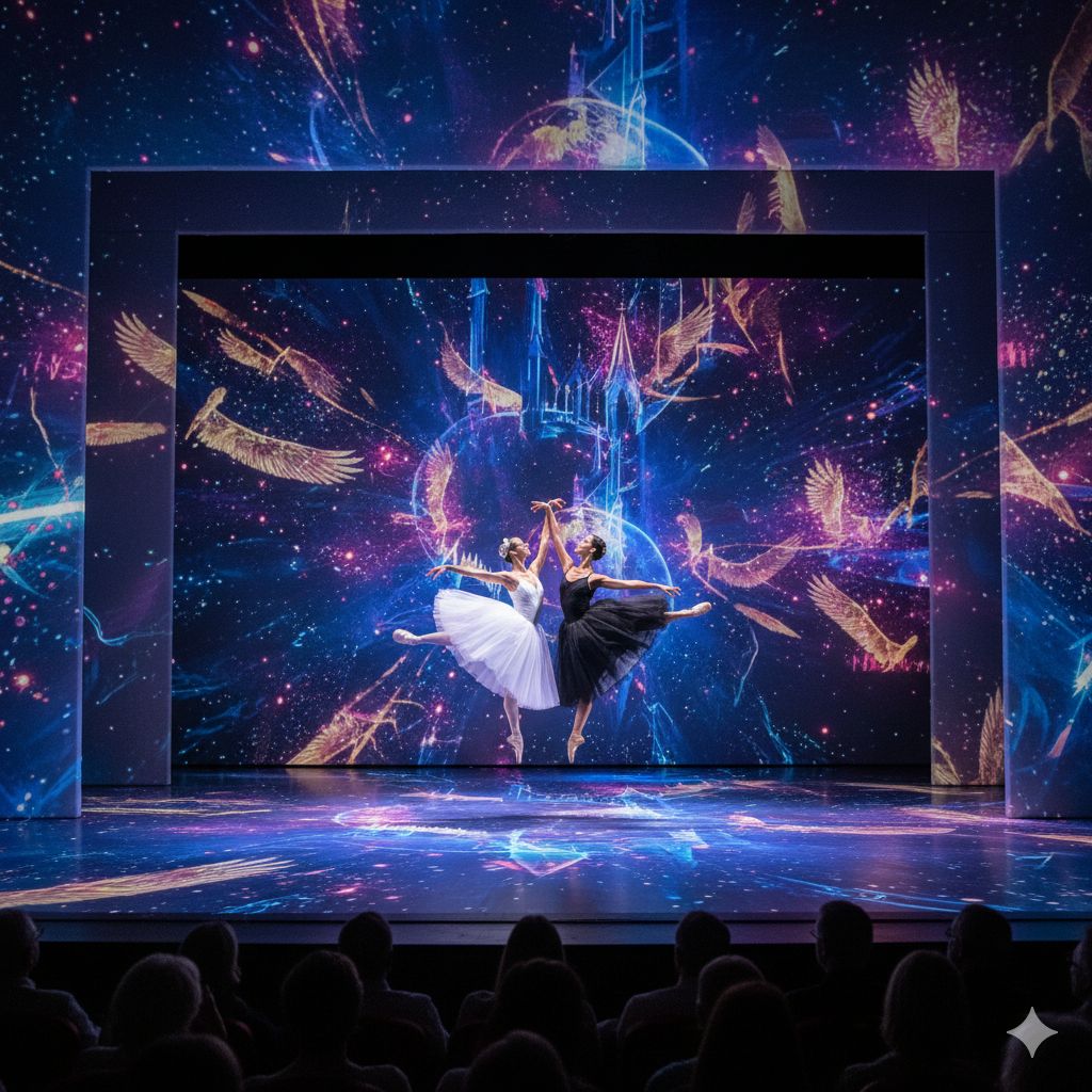 Le nuove coreografie, caratterizzate da una maggiore fluidità e da un’accentuazione della drammaturgia teatrale, trovano nell’ambiente digitale un complemento organico. I movimenti dei ballerini non sono più confinati in uno spazio statico, ma vengono amplificati e rispecchiati dalle trasformazioni luminose e geometriche della scenografia quantistica. Il risultato è un’esperienza immersiva che lega in modo indissolubile il linguaggio del corpo, la musica e l’innovazione digitale, creando un’opera che parla al pubblico del ventunesimo secolo senza tradire la grandezza emotiva del capolavoro ottocentesco di Čajkovskij.