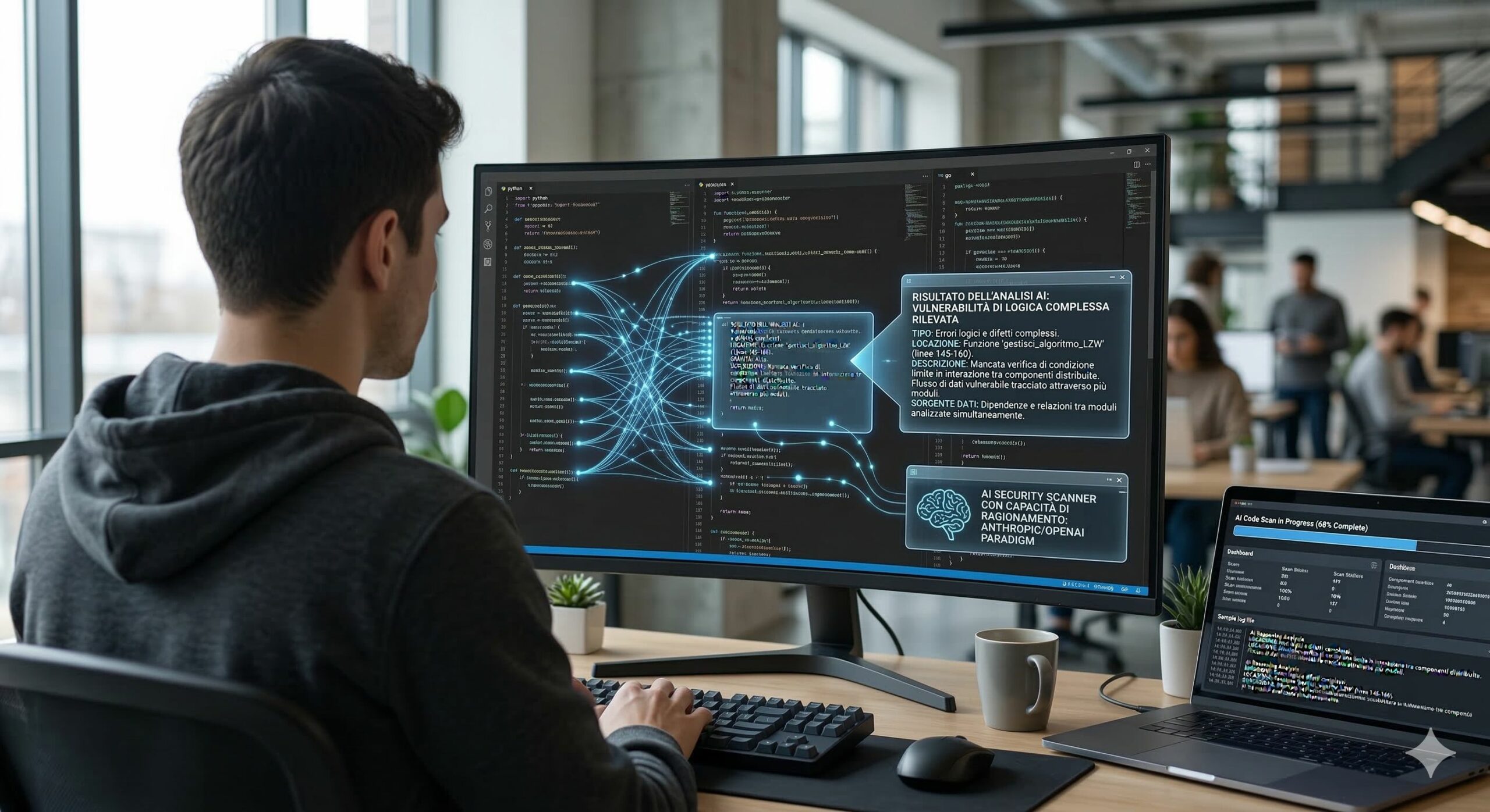 Dal punto di vista tecnico, la differenza tra i due approcci può essere descritta come la transizione da un sistema deterministico basato su regole a un sistema probabilistico basato su comprensione semantica del codice. Gli scanner SAST tradizionali analizzano le istruzioni in modo relativamente isolato, mentre i modelli basati su IA sono in grado di esaminare l’intero contesto del progetto software, includendo relazioni tra moduli, dipendenze e flussi di dati. Questo consente di individuare vulnerabilità legate alla logica applicativa, al controllo degli accessi o all’interazione tra componenti distribuiti.