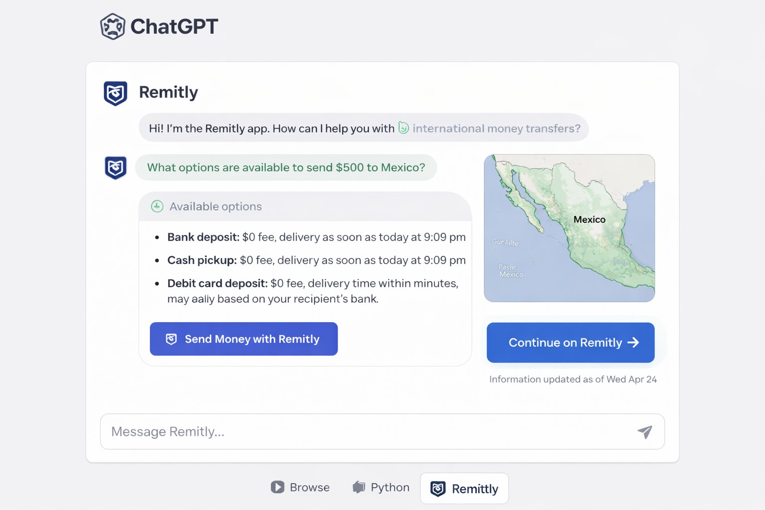 Questa integrazione si inserisce nel crescente ecosistema di applicazioni di terze parti all’interno di ChatGPT, dove servizi esterni vengono esposti come funzionalità invocabili tramite linguaggio naturale. In questo contesto, Remitly diventa il primo operatore specializzato nei trasferimenti internazionali a stabilire una presenza diretta nella piattaforma, configurandosi come un modulo informativo integrato piuttosto che come un sistema di esecuzione autonoma delle transazioni.