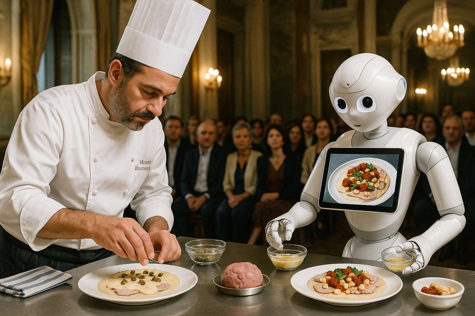 A Torino, durante la manifestazione Buonissima 2025, si è svolto un curioso e affascinante evento che ha messo in scena molto più di una semplice gara culinaria: in un angolo elegante della città piemontese, lo chef Massimiliano Brunetto, del ristorante Le Vitel Etonné, ha sfidato un robot dal nome simpatico, Pepper, dotato di intelligenza artificiale, nella preparazione del vitello tonnato, piatto simbolo della tradizione piemontese.