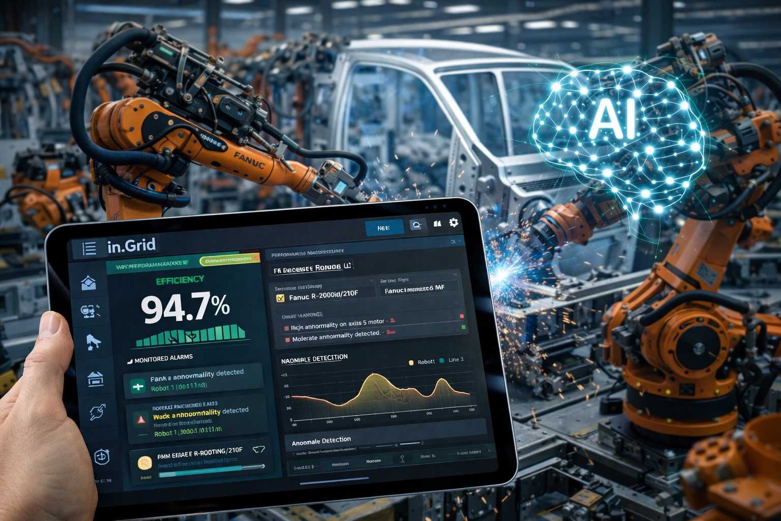 La differenza rispetto al passato è profonda. In un impianto tradizionale, la manutenzione degli impianti e dei robot avviene spesso solo dopo che qualcosa si è rotto o che un guasto ha già causato un fermo macchina. Con in.Grid, il paradigma cambia: il sistema raccoglie continuamente informazioni dai robot e dai loro controllori, analizza queste enormi quantità di dati con algoritmi avanzati e identifica deviazioni di performance, segnala anomalie e permette di intervenire prima che si verifichi un guasto effettivo. Questo tipo di manutenzione, definita predittiva, non si limita ad aumentare l’efficienza, ma riduce in modo significativo i tempi di inattività non programmata, i costi associati agli interventi di riparazione e lo spreco di risorse, portando a una produzione più fluida e affidabile.