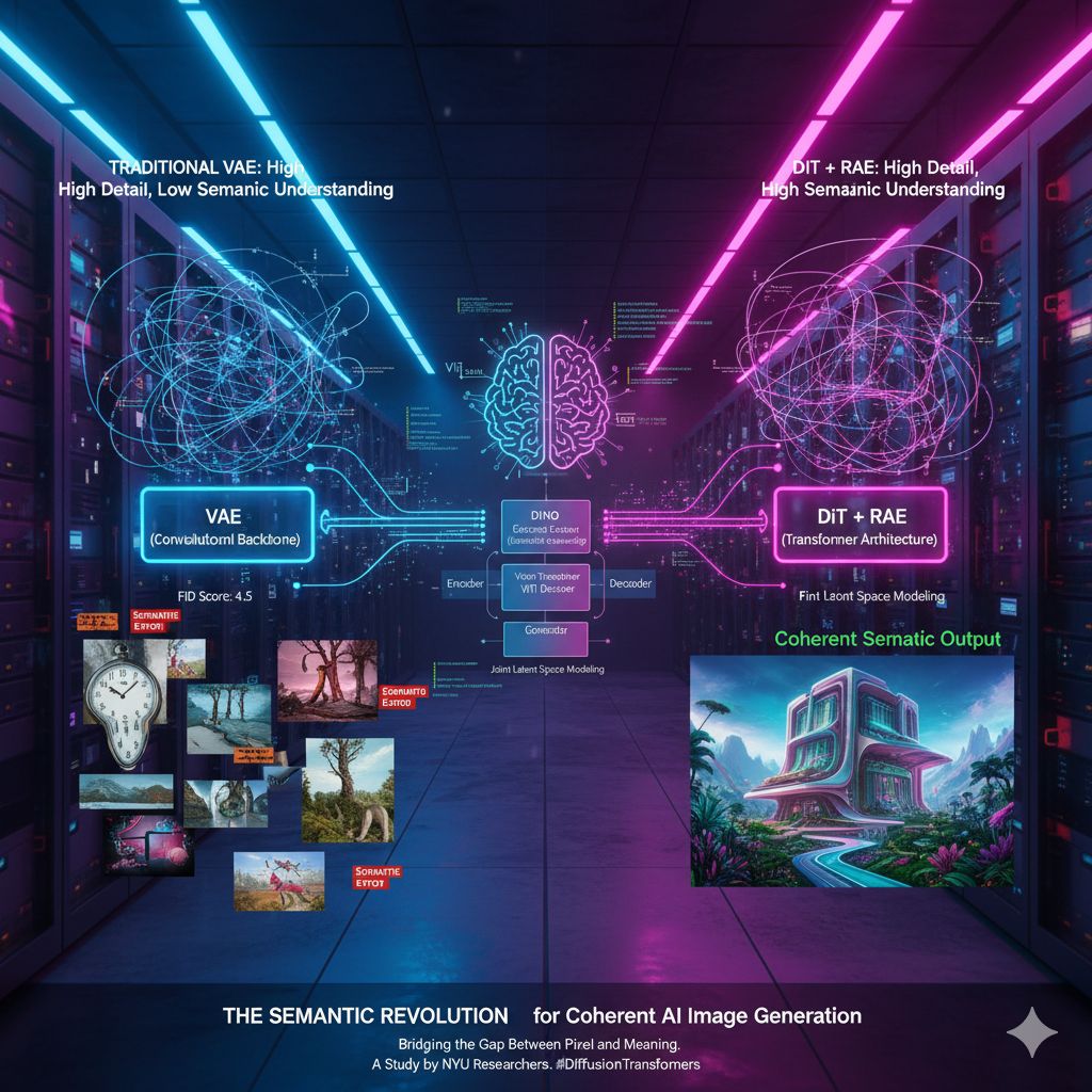Per colmare questa lacuna, i ricercatori della NYU hanno introdotto una nuova architettura chiamata Diffusion Transformer (DiT) che incorpora un Representation Autoencoder (RAE), una soluzione che promette di rivoluzionare la generazione di immagini fornendo ai modelli la capacità di comprendere veramente il significato di ciò che stanno creando.