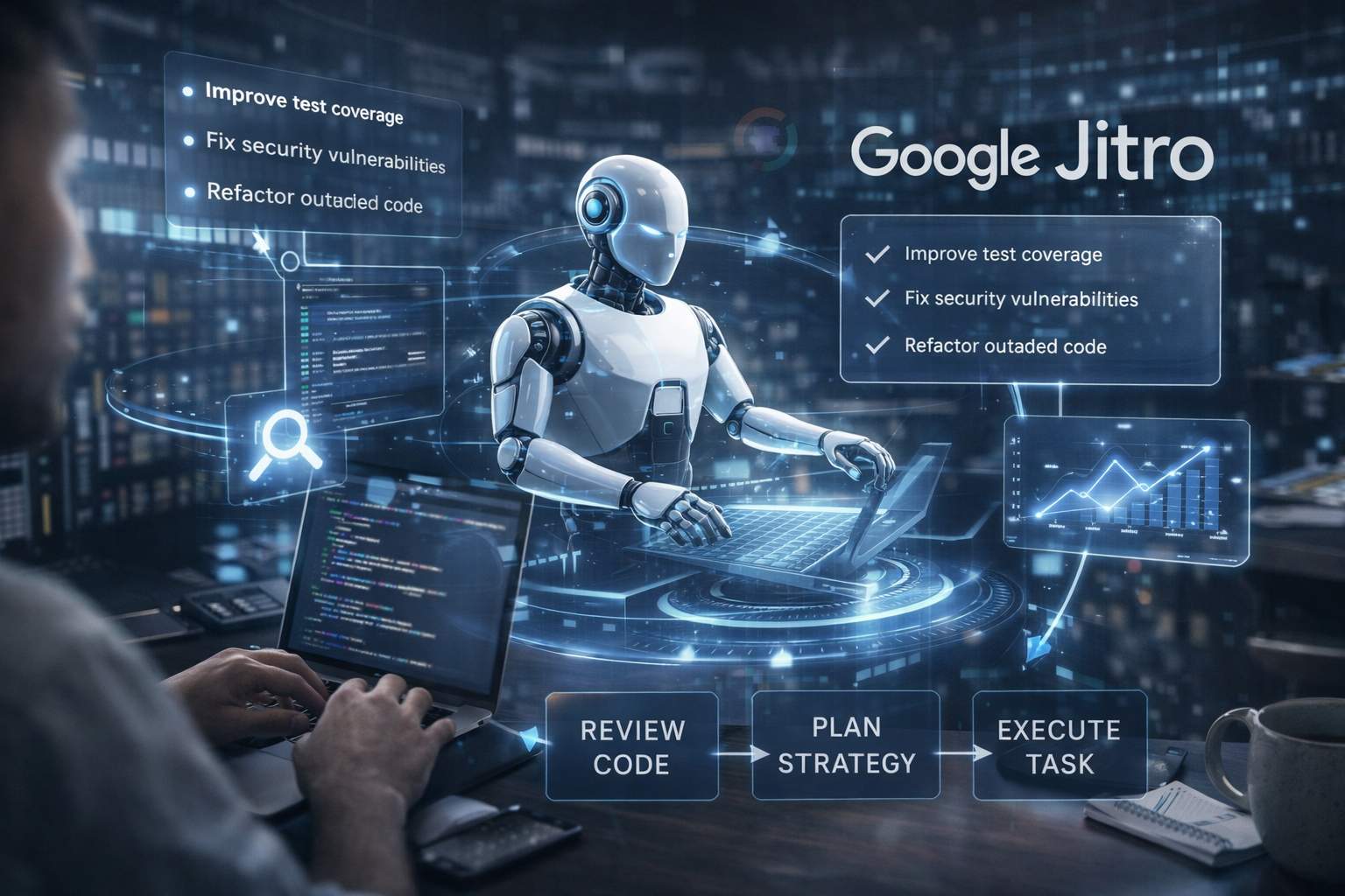 Questa evoluzione si basa su tre elementi chiave: persistenza del contesto, esecuzione asincrona e capacità di ragionamento multi-step. Jitro, derivato dall’esperienza di sistemi precedenti come Jules, non opera come un’interazione isolata, ma mantiene una “memoria operativa” del progetto nel tempo. Questo significa che non deve ricostruire il contesto a ogni richiesta, ma può lavorare in modo continuo, accumulando conoscenza sul codice, sulle dipendenze e sugli obiettivi del sistema.