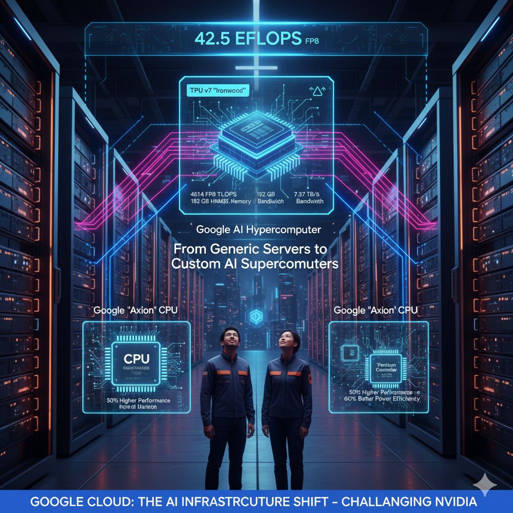 L’intelligenza artificiale (AI) su larga scala sta vivendo un momento di intensa ridefinizione, con Google che lancia una sfida diretta al predominio infrastrutturale di NVIDIA attraverso un aggiornamento radicale del suo sistema di supercalcolo integrato. Con la presentazione delle istanze AI di nuova generazione basate sulle TPU “Ironwood” e sulle CPU “Axion”, Google Cloud non sta semplicemente rilasciando nuovi prodotti, ma sta proponendo un cambio di paradigma: il passaggio dai server generici ai supercomputer AI personalizzati.