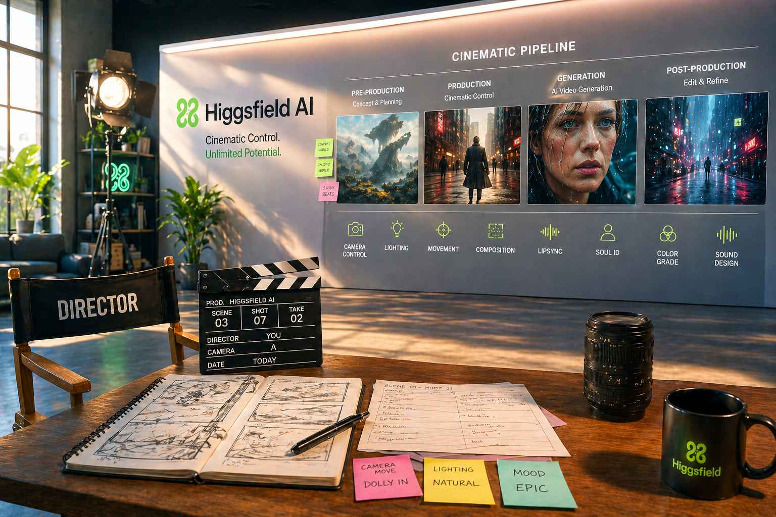 Higgsfield AI è una piattaforma che si posiziona non come semplice generatore di contenuti, ma come ambiente di produzione video completo orientato al controllo cinematografico. Il punto centrale non è la generazione automatica “a prompt”, ma la trasformazione dell’utente in un operatore che dirige attivamente scena, camera e linguaggio visivo, con un approccio che richiama pipeline di produzione audiovisiva più strutturate rispetto agli strumenti text-to-video tradizionali.