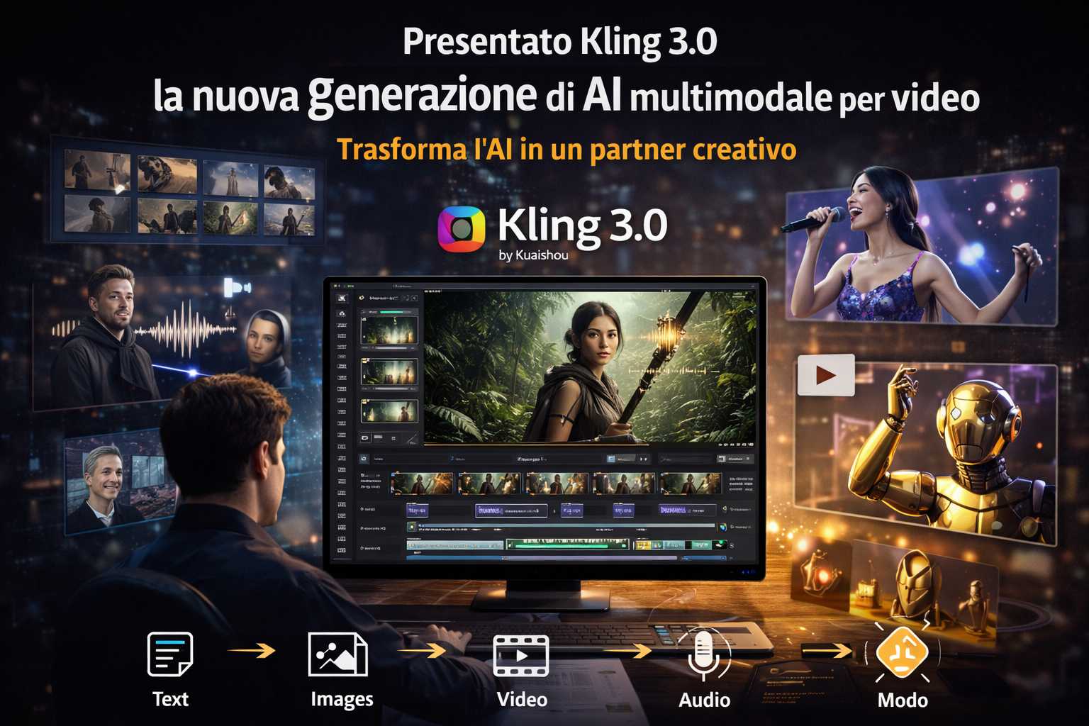 La presentazione di Kling 3.0 segna un passaggio rilevante nell’evoluzione della generazione video basata su intelligenza artificiale. Il modello sviluppato da Kuaishou non si limita più a produrre clip a partire da prompt testuali, ma si propone come un sistema creativo completo e nativamente multimodale, capace di elaborare testo, immagini, video e audio all’interno di un unico motore. È un cambiamento di prospettiva che sposta l’AI dal ruolo di semplice strumento di creazione a quello di partner in grado di comprendere la direzione narrativa e le intenzioni registiche di chi crea contenuti.