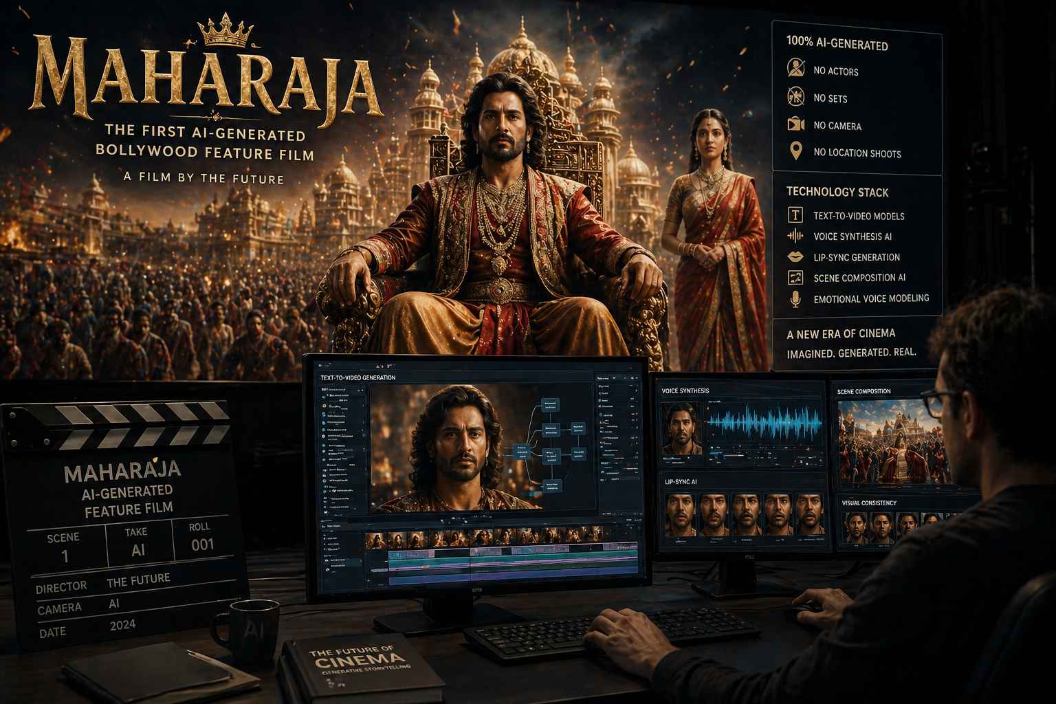 Il debutto di “Maharaja” segna un punto di rottura tecnologico nel panorama dell’industria cinematografica indiana, rappresentando il primo lungometraggio di Bollywood interamente generato attraverso sistemi di intelligenza artificiale. Questa produzione non si limita a utilizzare l’automazione per gli effetti visivi secondari, ma sostituisce integralmente ogni elemento tradizionale del set, eliminando la necessità di attori fisici, scenografie materiali e riprese in esterna. Il processo tecnico che ha portato alla realizzazione del film si basa sull’impiego di una pipeline integrata di modelli text-to-video e architetture di sintesi vocale avanzate, capaci di generare sequenze narrative complesse partendo esclusivamente da input testuali e parametri di regia digitali.
