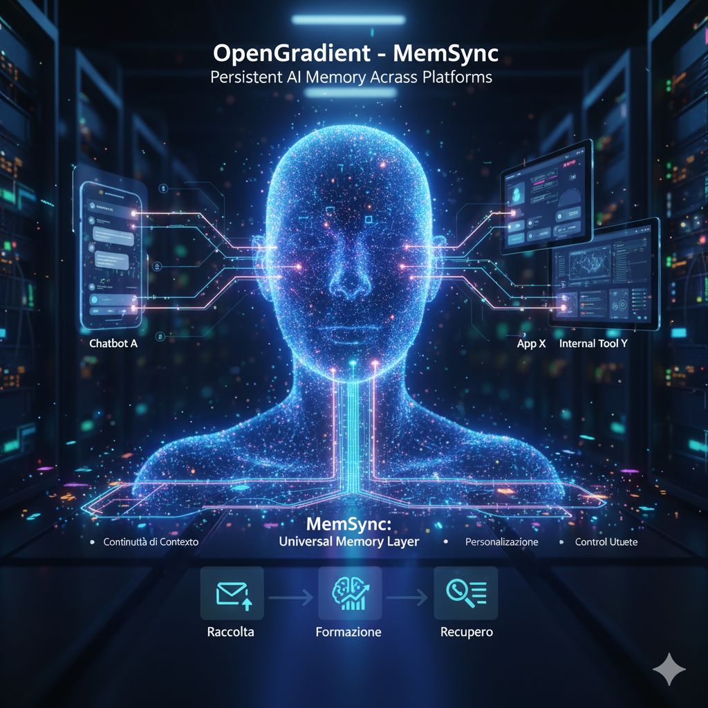 OpenGradient afferma che MemSync fornisce una memoria persistente, sicura e controllata dall’utente, che “viaggia” con l’utente attraverso i diversi ambienti AI. Quando passi da un assistente all’altro, il sistema mantiene il contesto, senza che tu debba ripetere tutto o perdere traccia delle tue preferenze o dei dettagli già condivisi.