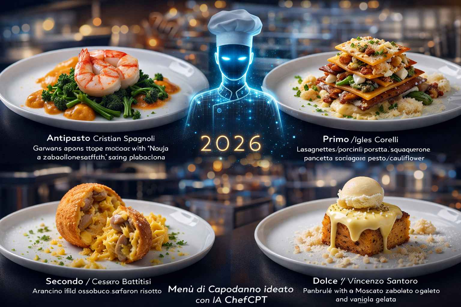 Per celebrare l’arrivo del 2026, ChefCPT ha elaborato un menu “stellato” che si snoda attraverso quattro portate firmate da altrettanti grandi chef italiani, con l’intelligenza artificiale come filo conduttore nell’ideazione e nella tecnica. L’esperimento non è solo una vetrina di creatività, ma anche una dimostrazione di come gli strumenti basati sull’AI possano supportare la cucina d’autore senza sostituire il talento umano, combinando sapere culinario, tecniche consolidate e suggestioni nuove.
