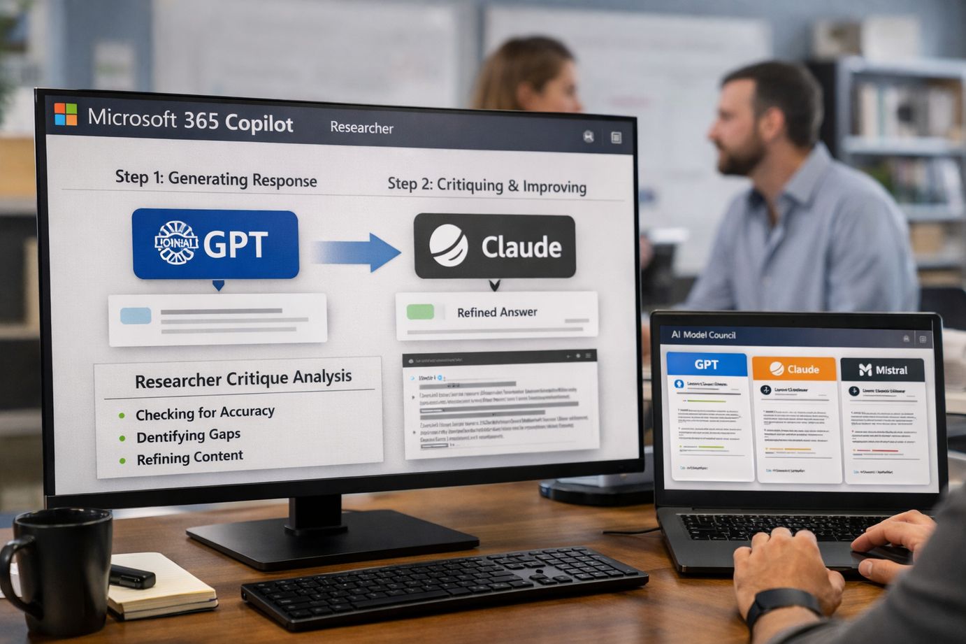 Questa impostazione segna un cambiamento architetturale rispetto ai sistemi basati su un singolo modello. L’approccio multi-modello introduce una pipeline in cui ogni componente svolge un ruolo distinto, simile a un processo di revisione tra pari. Microsoft ha aggiunto questa logica all’interno dell’agente di ricerca avanzata chiamato “Researcher”, integrando una funzione denominata “Critique” che implementa il controllo incrociato tra modelli.