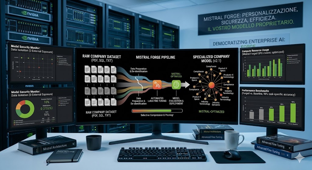 L’intelligenza artificiale generativa si sta spostando rapidamente da una fase di sperimentazione generica a una di implementazione verticale, dove il valore risiede nella capacità di un modello di comprendere il contesto specifico di un’organizzazione. In questa direzione si colloca il lancio di Mistral Forge, una piattaforma progettata da Mistral AI per fornire alle imprese gli strumenti necessari a creare, raffinare e gestire modelli linguistici proprietari. L’obiettivo tecnico dell’iniziativa è abbattere le barriere d’ingresso per l’addestramento personalizzato, permettendo alle aziende di trasformare i propri asset informativi grezzi in modelli specializzati che mantengono le prestazioni dei sistemi allo stato dell’arte, ma con una conoscenza profonda dei domini verticali di riferimento.