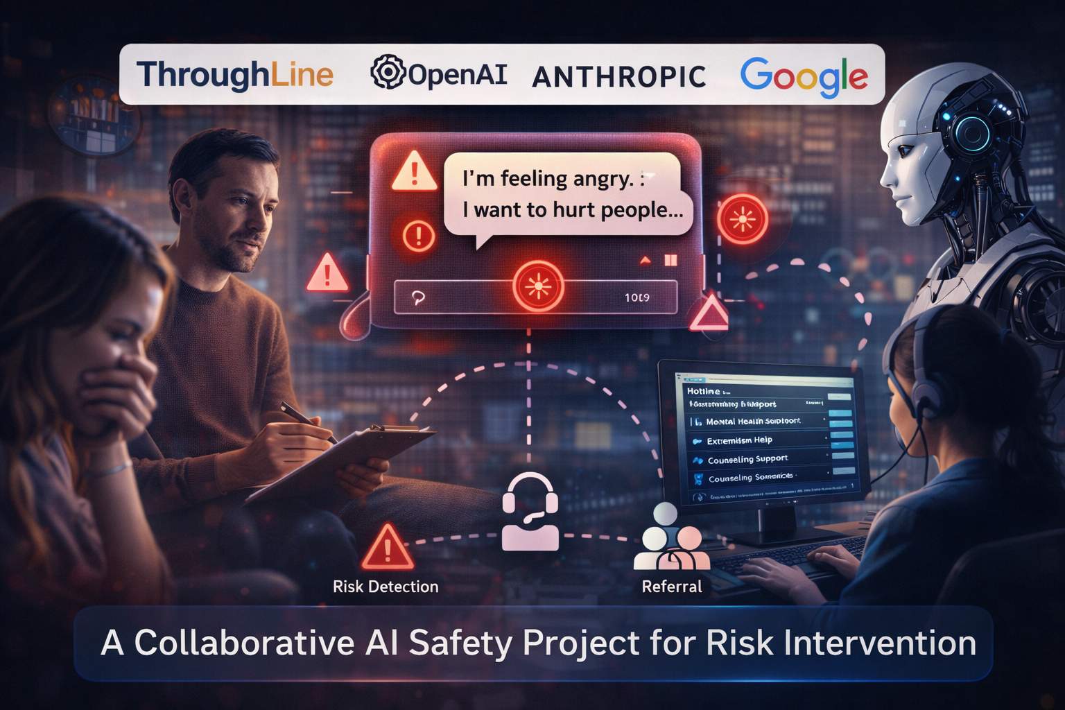 Il sistema sviluppato da ThroughLine è progettato per identificare segnali di rischio nei comportamenti degli utenti, come manifestazioni di estremismo o contenuti violenti, e attivare una risposta graduata. Invece di limitarsi a bloccare l’interazione, la piattaforma punta a indirizzare l’utente verso servizi di supporto, consulenza o assistenza specializzata. Questo approccio viene definito “ibrido” perché combina il rilevamento automatico basato su AI con l’intervento di operatori umani e organizzazioni di supporto.