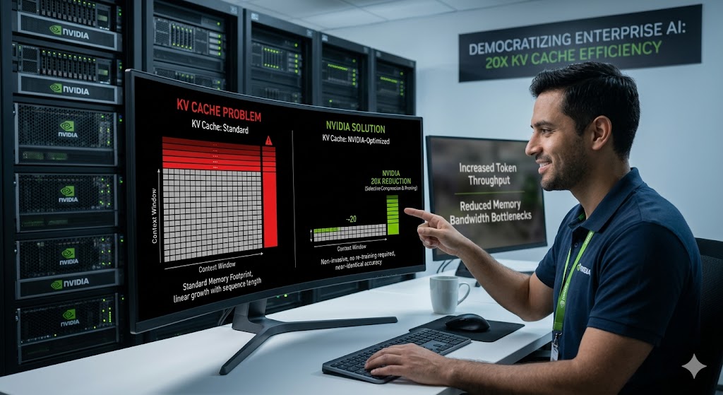 Uno dei colli di bottiglia più critici nelle architetture Transformer è rappresentato dalla KV Cache (Key-Value Cache), un sistema che memorizza i contesti passati per accelerare la generazione di nuovi token. Con l’aumentare della lunghezza delle sequenze, questa cache cresce linearmente, saturando rapidamente la memoria disponibile anche sulle GPU di classe enterprise. NVIDIA ha recentemente presentato una soluzione metodologica capace di ridurre l’occupazione di memoria della KV Cache fino a venti volte, operando esclusivamente sull’efficienza del contesto memorizzato senza la necessità di riaddestrare il modello o modificarne i pesi originali.