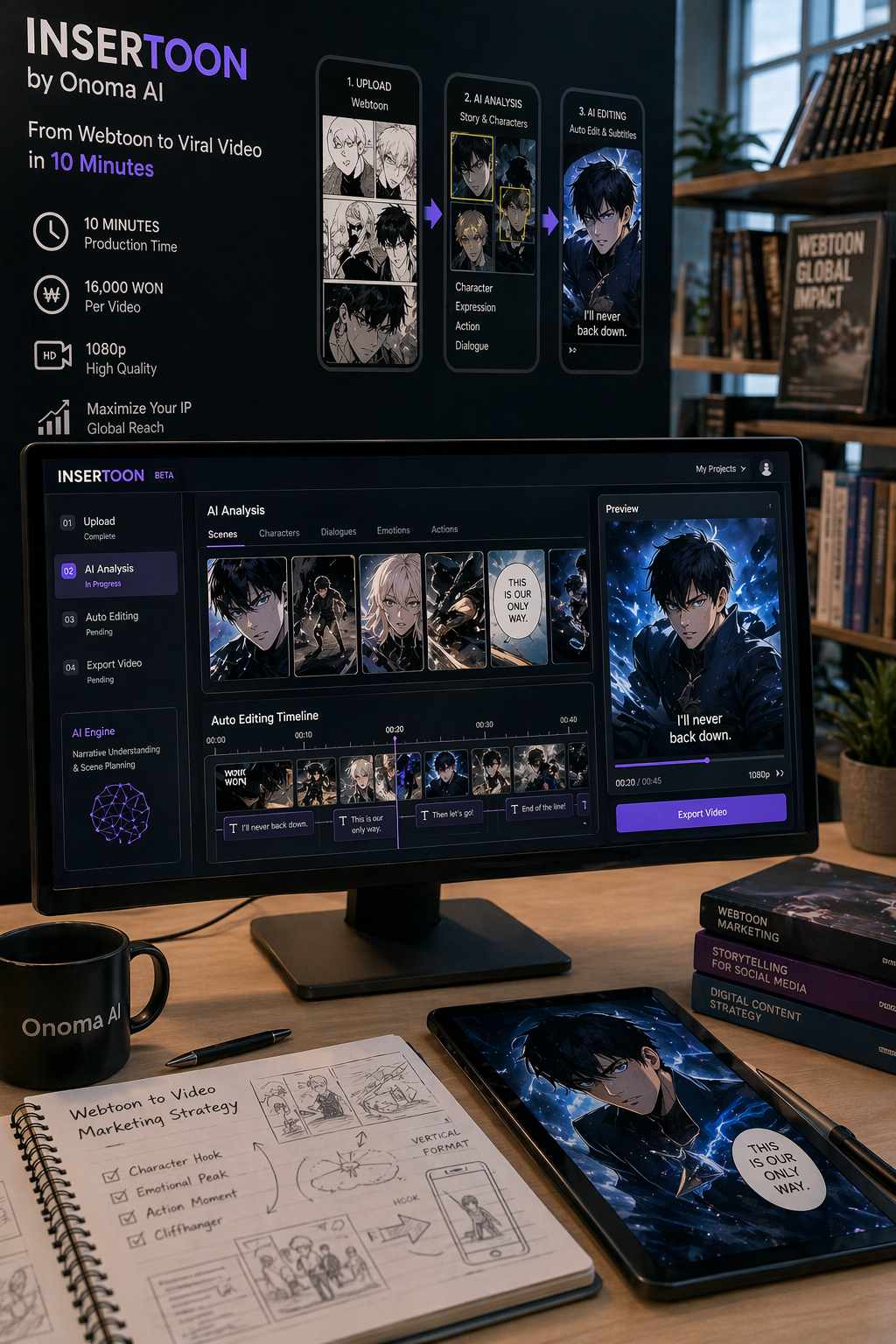 Il lancio della versione beta di Insertoon da parte di Onoma AI introduce una soluzione tecnologica specificamente progettata per risolvere il collo di bottiglia economico e operativo che affligge la promozione della proprietà intellettuale (IP) dei webtoon sui canali social. La piattaforma opera come un Software-as-a-Service (SaaS) capace di trasformare i manoscritti statici dei fumetti digitali in video brevi di formato verticale, ottimizzati per ecosistemi come TikTok, Instagram Reels e YouTube Shorts. Il valore tecnico di Insertoon risiede nella sua capacità di abbattere i tempi di produzione da diverse settimane a soli dieci minuti, riducendo contestualmente i costi dai milioni di won dei processi manuali a una frazione minima, stimata intorno ai 16.000 won per singolo output.