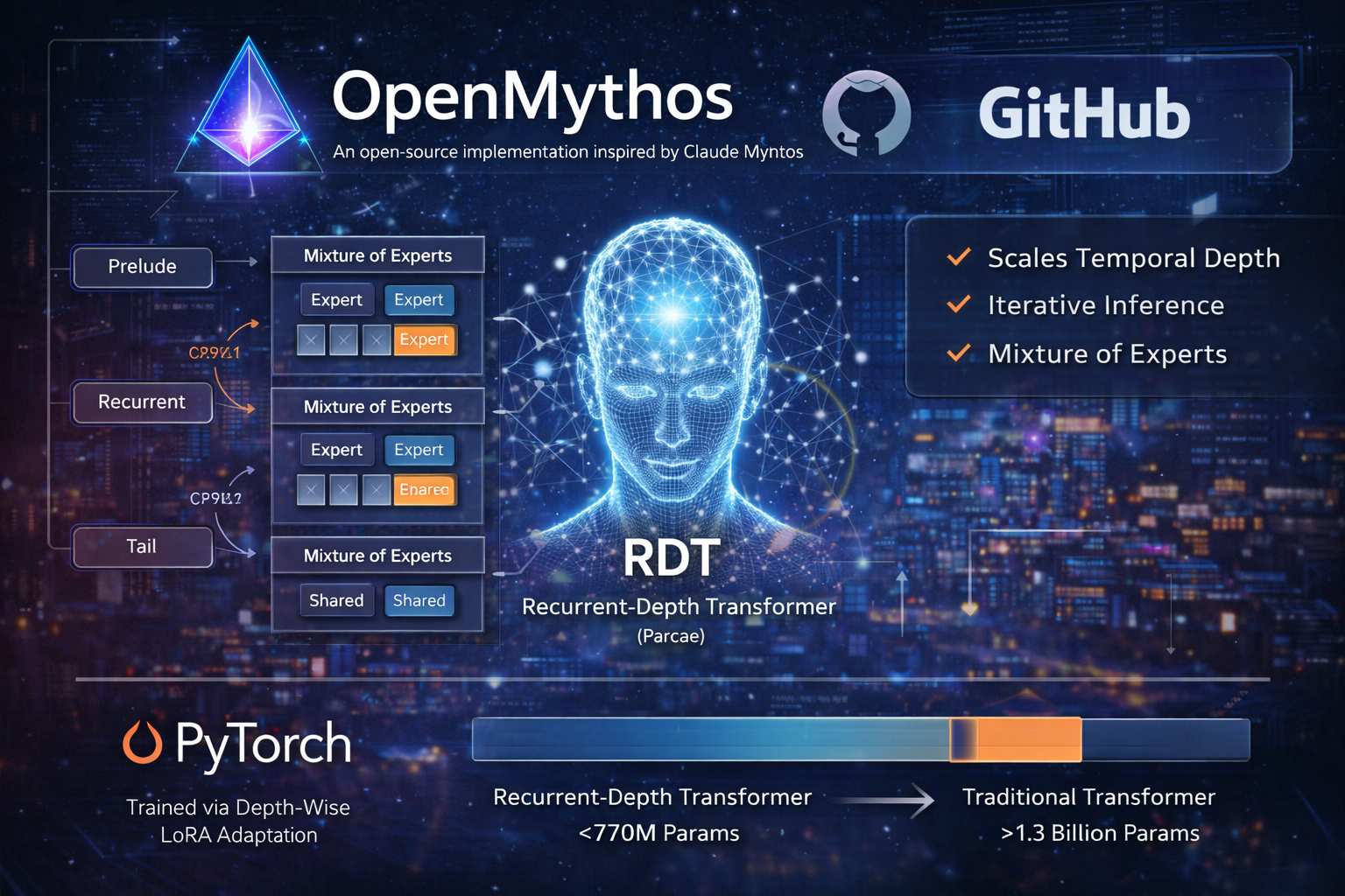 OpenMythos, rilasciato su GitHub da Kye Gomez, si propone di reinterpretare in chiave open-source il funzionamento di Claude Mythos, modello sviluppato da Anthropic, senza accesso diretto al codice originale o a documentazione tecnica ufficiale. Questa operazione si colloca a metà strada tra reverse engineering concettuale e ricerca sperimentale, basandosi su ipotesi derivate da osservazioni indirette, pubblicazioni correlate e analisi comparative.
