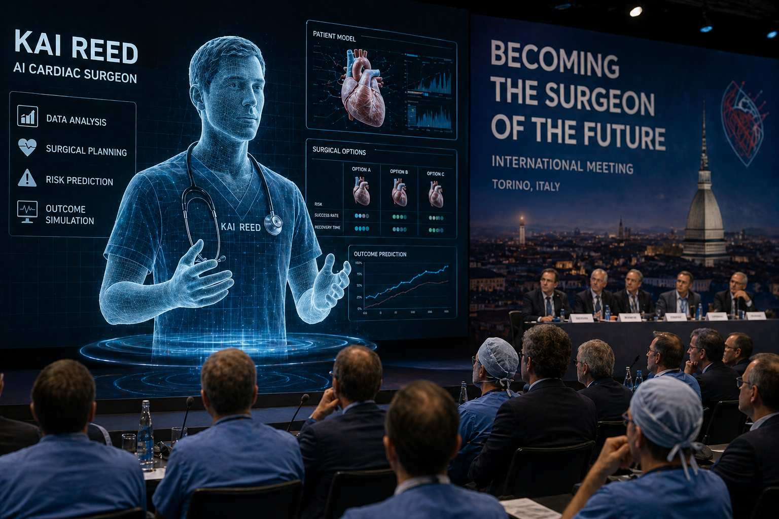 Il debutto è avvenuto a Torino durante il meeting internazionale “Becoming the Surgeon of the Future”, un contesto altamente specialistico in cui si confrontano cardiochirurghi provenienti da diversi Paesi. In questo scenario è stato presentato Kai Reed, un cardiochirurgo generato tramite intelligenza artificiale, inserito a tutti gli effetti nel programma scientifico dell’evento. Non si tratta di un robot fisico in sala operatoria, ma di un sistema progettato per partecipare attivamente al dibattito clinico, contribuendo alla riflessione sulle scelte chirurgiche e sui modelli decisionali.