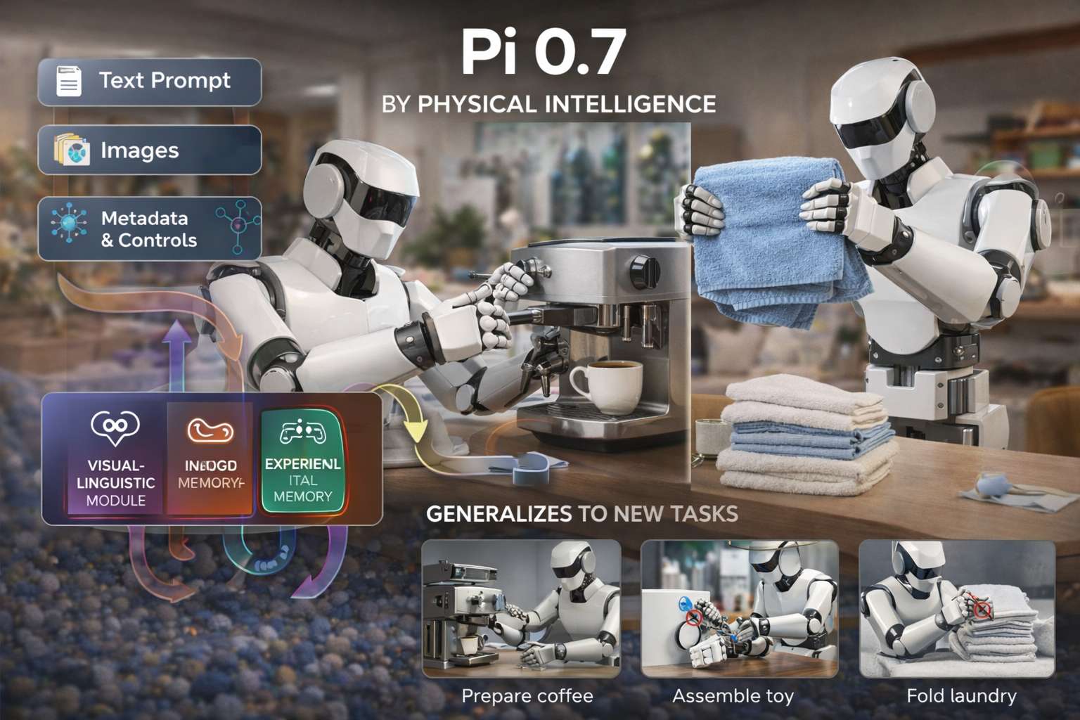 Il cuore tecnologico di Pi 0.7 è rappresentato da un’architettura di tipo visivo-linguistico-azionaria, progettata per integrare simultaneamente diverse modalità informative e tradurle in azioni fisiche. Il modello, con una dimensione complessiva di circa cinque miliardi di parametri, è composto da tre moduli principali che operano in sinergia. Il primo è un modello visivo-linguistico, responsabile dell’interpretazione di immagini e linguaggio naturale, che costituisce la base semantica del sistema. Il secondo è un componente di memoria esperienziale, assimilabile a un registratore di situazioni precedenti, che consente di richiamare contesti e sequenze operative già osservate. Il terzo è un modulo di azione, incaricato di tradurre le rappresentazioni interne in comandi motori concreti, determinando il comportamento fisico del robot.