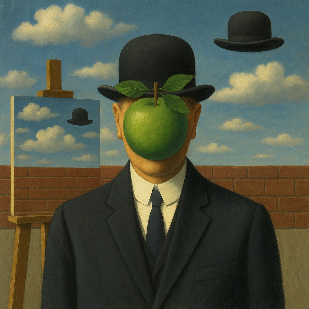 Il modello di AI è stato alimentato con l’intera opera dell’artista, imparando a riconoscere non solo gli elementi ricorrenti, i cosiddetti “oggetti magrittiani”, ma anche le regole implicite della loro giustapposizione. L’intelligenza artificiale ha acquisito la capacità di identificare la “grammatica” del suo linguaggio visivo: la frequenza con cui un certo oggetto compare in un determinato ambiente, come l’artista manipola le dimensioni o nasconde parti del volto, o quali combinazioni di elementi sono predilette per generare quel senso di familiare mistero che è la cifra stilistica di Magritte.