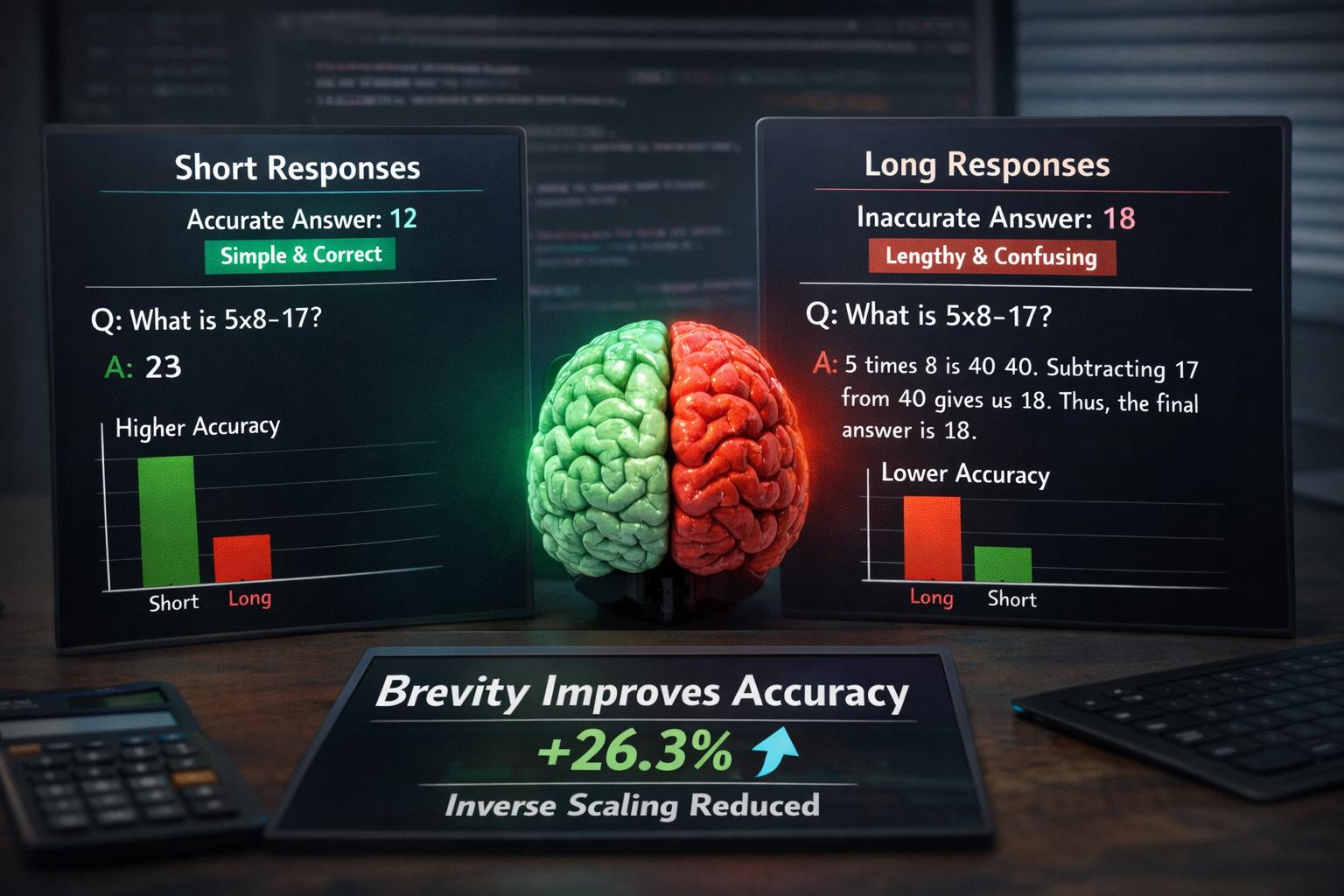 I risultati mostrano che l’effetto è particolarmente evidente in ambiti come la matematica e la comprensione del testo. Nei test citati, ai modelli è stato chiesto di rispondere con meno di 50 parole nei problemi matematici e con meno di 10 parole nelle prove di comprensione, ottenendo un miglioramento significativo della precisione. Ciò suggerisce che l’espansione discorsiva non aiuta il processo di inferenza, ma introduce rumore cognitivo nella generazione.