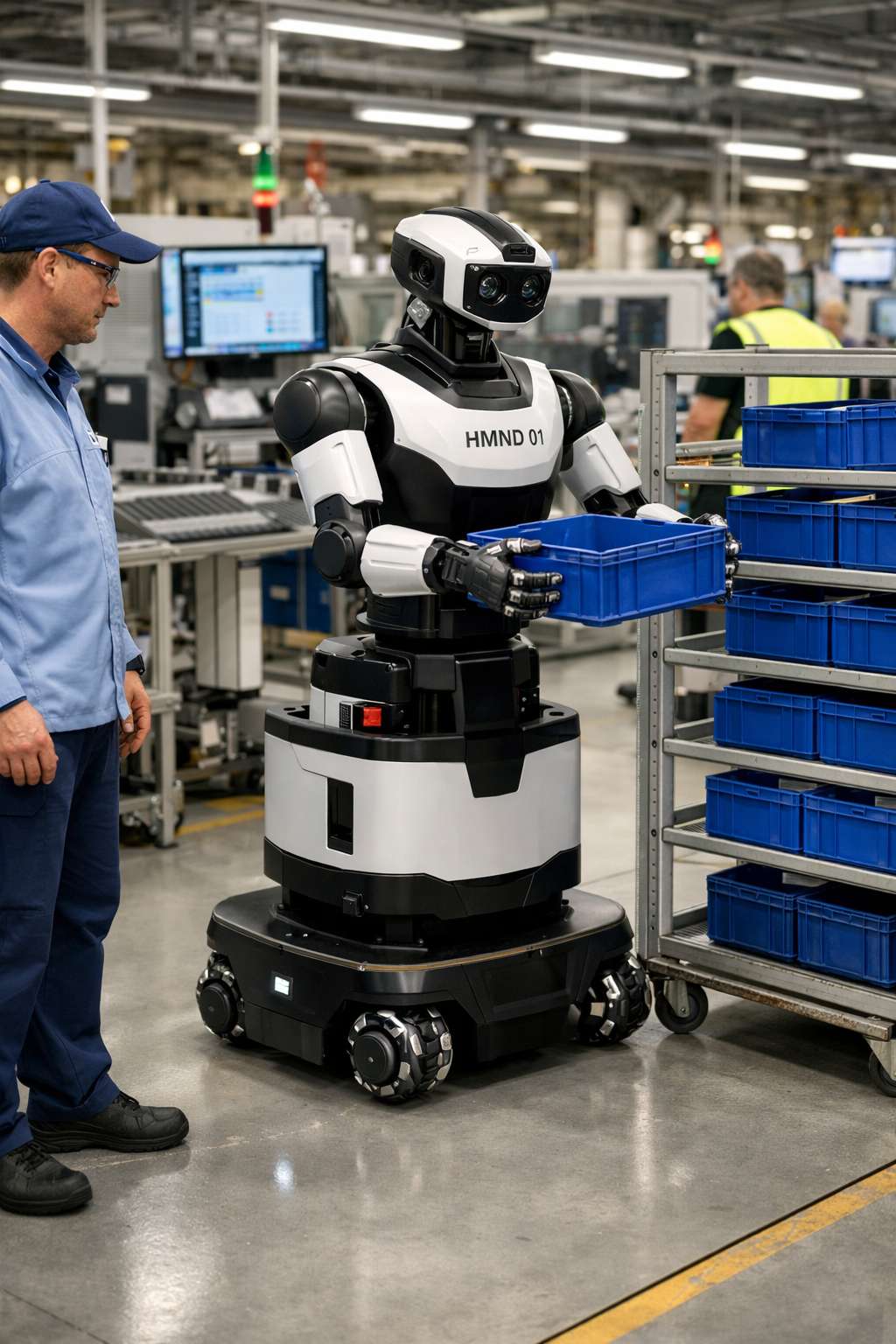 Il robot HMND 01 Alpha rappresenta un’evoluzione rispetto ai tradizionali umanoidi. Non è progettato per replicare fedelmente il movimento umano, ma per massimizzare l’efficienza operativa. La scelta di una base mobile su ruote omnidirezionali, invece della locomozione bipede, risponde a esigenze di stabilità, consumo energetico e continuità operativa tipiche dell’ambiente industriale. La parte superiore del robot è invece ottimizzata per la manipolazione, con capacità di presa e movimentazione adattiva. Questo approccio ibrido riflette una tendenza emergente nella robotica industriale: la funzionalità prevale sull’estetica antropomorfica, soprattutto quando si tratta di applicazioni produttive.