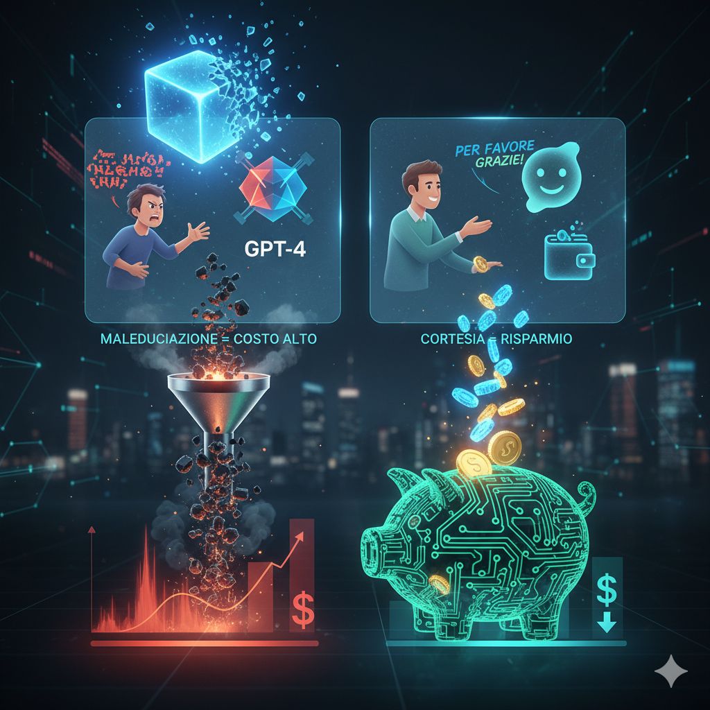 L’interazione con l’intelligenza artificiale conversazionale è ormai una pratica quotidiana in moltissimi contesti, sia personali che aziendali. Spesso si è portati a ritenere che, essendo il modello un algoritmo privo di emozioni, l’approccio linguistico – la cortesia o la scortesia – non abbia alcuna influenza sul risultato finale. La saggezza convenzionale, infatti, ha sempre suggerito che dire “per favore” o “grazie” a un modello linguistico di grandi dimensioni (LLM) come ChatGPT fosse un atto superfluo, un residuo delle abitudini umane, senza alcun impatto sulla qualità o sull’efficienza della risposta. Ebbene, un recente e sorprendente studio condotto da ricercatori dell’Università dell’Iowa sta ribaltando questa prospettiva, rivelando che la maleducazione nel prompting non solo è inutile, ma rappresenta una vera e propria “tassa sulla scortesia” in grado di far lievitare in modo significativo i costi operativi per le grandi aziende.
