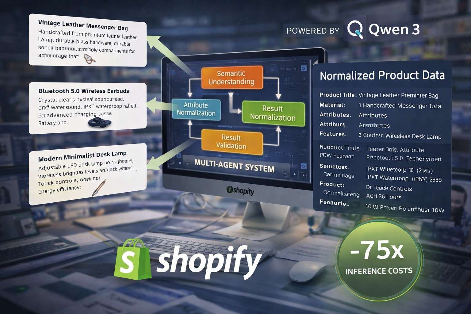L’adozione dei modelli linguistici nelle piattaforme e-commerce sta trasformando radicalmente il modo in cui i dati dei merchant vengono elaborati e normalizzati. Shopify ha recentemente presentato un’architettura basata su Qwen 3 che consente di ridurre i costi di inferenza fino a 75 volte rispetto agli approcci precedenti, mantenendo o migliorando la qualità dell’estrazione dei dati. Questo risultato è stato ottenuto attraverso un framework multi-agente progettato per l’elaborazione strutturata delle informazioni provenienti dai merchant, come descrizioni di prodotto, attributi e metadati.