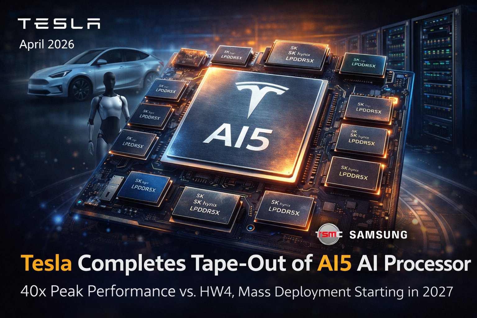 Sotto il profilo tecnico, l’AI5 si distingue per una densità computazionale senza precedenti, ottenuta riducendo del 50% l’ingombro fisico del chip pur aumentandone drasticamente le capacità di calcolo e di memoria. L’architettura prevede una stretta integrazione con 12 package di memoria LPDDR5X forniti da SK Hynix, disposti radialmente attorno al processore per supportare un’interfaccia a 384 bit. Questa configurazione consente di raggiungere una larghezza di banda estremamente elevata, stimata in circa 1,5 Terabit al secondo (TB/s), una specifica critica per gestire i modelli di intelligenza artificiale di nuova generazione che richiedono il processamento istantaneo di flussi video ad alta risoluzione provenienti da molteplici sensori. La flessibilità produttiva è garantita da una doppia partnership con TSMC e Samsung Electronics, assicurando a Tesla una diversificazione della supply chain fondamentale per evitare i colli di bottiglia che hanno afflitto il settore negli anni passati.