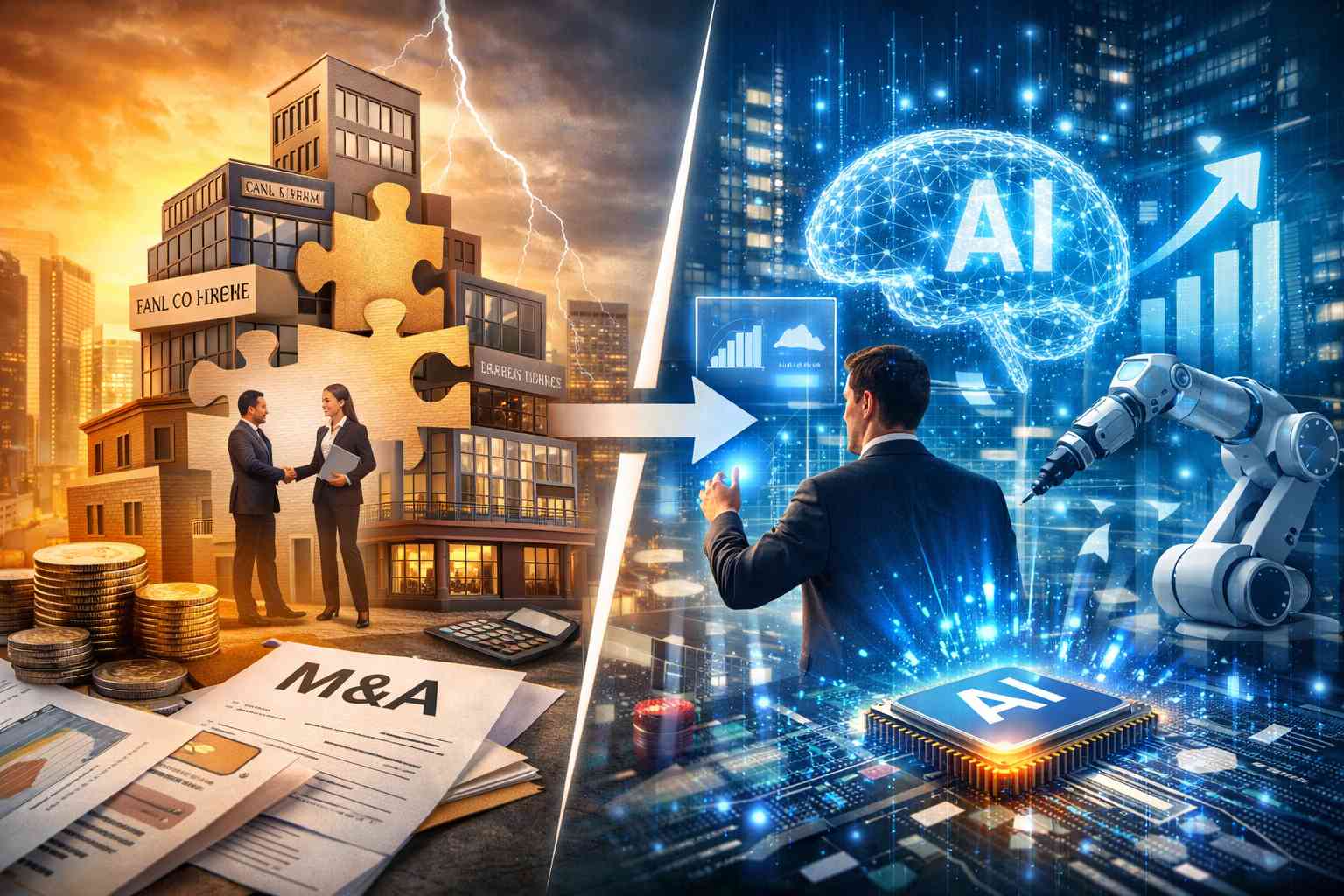 In questo contesto, la capacità di innovare diventa cruciale. L’intelligenza artificiale (AI) cambia radicalmente le dinamiche competitive perché non si limita a supportare l’accumulo di asset: permette invece di estrarre più valore da ogni azienda acquisita. In altre parole, mentre la M&A tradizionale si concentra sulla dimensione e sui guadagni operativi a breve termine, l’approccio basato sull’AI riesce non solo a consolidare, ma anche a moltiplicare le capacità interne delle imprese, potenziando efficienza, automazione e profittabilità.