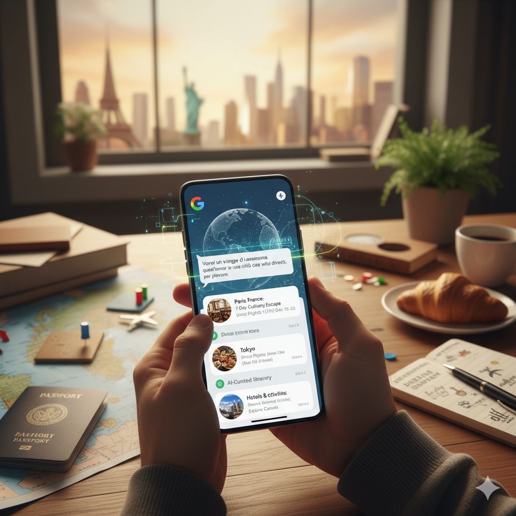 “Canvas” agisce come una tela digitale dove i piani prendono forma in modo organico. Selezionando l’opzione “Crea con Canvas” nella modalità AI e descrivendo il tipo di viaggio desiderato, l’utente riceve immediatamente un piano che è una sintesi dinamica di dati in tempo reale. Questo piano intreccia informazioni di ricerca aggiornate su voli e hotel, dettagli precisi da Google Maps con foto e recensioni, e approfondimenti rilevanti raccolti da tutto il web. Lo strumento offre comparazioni alberghiere basate su prezzi e servizi, suggerisce ristoranti e attività ottimizzate in base ai tempi di spostamento e permette di porre domande successive per bilanciare scelte complesse, come le preferenze sulla posizione dell’alloggio.