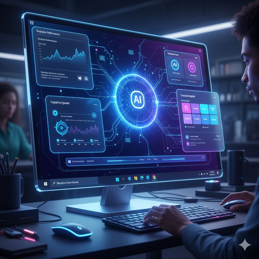 Gli algoritmi lavoreranno silenziosamente in background per migliorare l’efficienza quotidiana. Si prevede che l’IA gestirà l’ottimizzazione delle prestazioni, la gestione delle risorse (come la batteria e la memoria) e la personalizzazione dell’esperienza utente a un livello mai visto. Ad esempio, il sistema potrebbe imparare le abitudini di lavoro dell’utente per anticipare i software necessari in un dato momento, suggerire azioni o persino riorganizzare automaticamente l’ambiente di lavoro in base al contesto (lavoro, intrattenimento, creazione). L’IA diventerà il motore che rende il PC non solo reattivo, ma predittivo e adattivo.