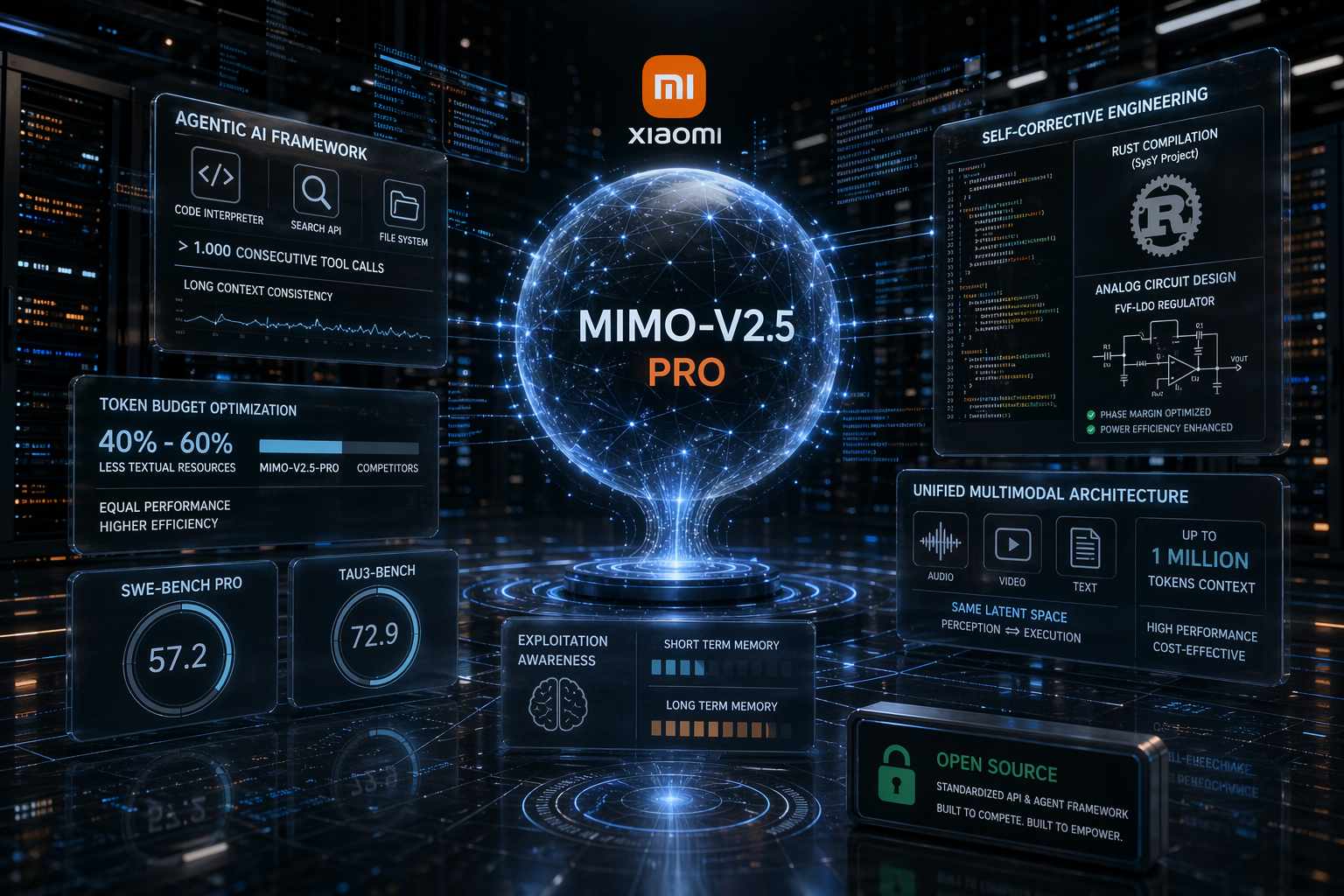 Il modello MIMO-V2.5-Pro introduce innovazioni significative nella gestione del “budget di token”, riuscendo a eguagliare le prestazioni di competitor diretti come Gemini 3.1 Pro pur utilizzando tra il 40% e il 60% in meno di risorse testuali. Questo risultato è reso possibile dalla “consapevolezza dello sfruttamento”, una funzionalità che permette al modello di ottimizzare autonomamente il proprio ambiente di esecuzione e di gestire attivamente la memoria a breve e lungo termine. Nei test di benchmark come SWE-Bench Pro e Tau3-Bench, i punteggi ottenuti (rispettivamente 57,2 e 72,9) confermano che la densità di intelligenza per singolo token è stata drasticamente aumentata, permettendo al sistema di navigare contesti estesi senza perdere di vista le istruzioni originali, un fattore critico per l’ingegneria del software automatizzata.